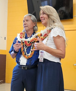 Nolan Chang with Laura Nakanelua in 2024 when they were elected national committeeman and national committeewoman respectively at the Hawaii GOP state convention held in Mililani, Oahu