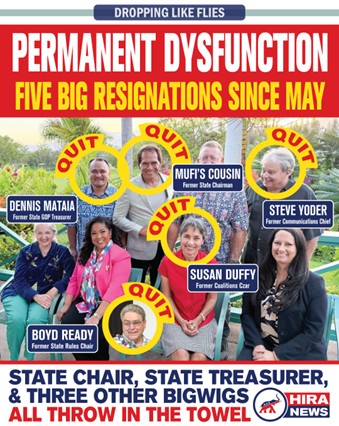In fact, Chang’s internal campaign for change at the state party appears to have petered out (leading him to prematurely terminate his own unproductive tenure in office); with crooked interim state chair Shirlene Ostrov fully expected to seize a golden opportunity to remake the Hawaii GOP in her image now that Art Hannemann and Nolan Chang and other former top leaders are out of her way thanks to a flurry of resignations reported on by HIRA News. In fact, Ostrov has already begun installing RINO loyalists like Jill “Lani” Stone-Kaaa, Sheila “chief election interference coordinator” Walker, Fenton “Kaulana” Lee, and Boyd “Not-So” Ready. More Ostrov loyalists are expected to be named in the near future so the internal destruction of the party can accelerate with all hands on deck pouring gasoline and lighting matches.