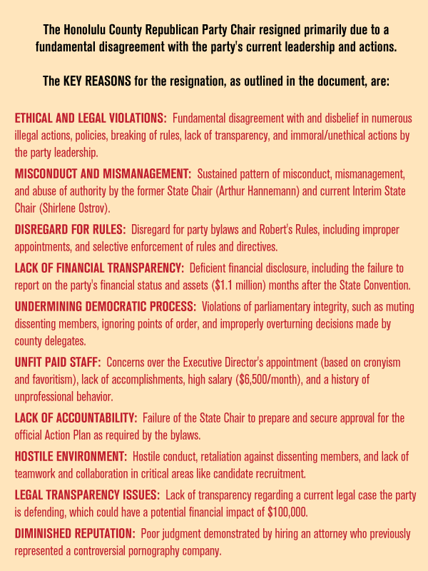 You can read Chang’s entire resignation letter HERE, which is posted on the Oahu GOP county website; a site which the country club establishment RINO wing of the Hawaii GOP has long hoped to force offline as it usually conveyed more conservative sentiments than the very nonthreatening state party website.